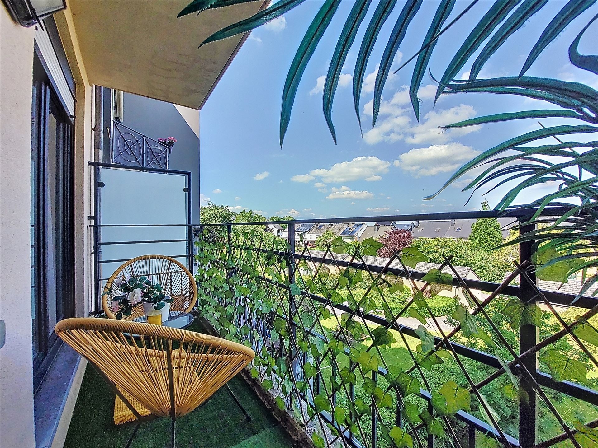Son balcon orienté nord-ouest offre une agréable vue dégagée, l’arrière du bâtiment étant en contrebas, préservant ainsi l’intimité et la tranquillité.