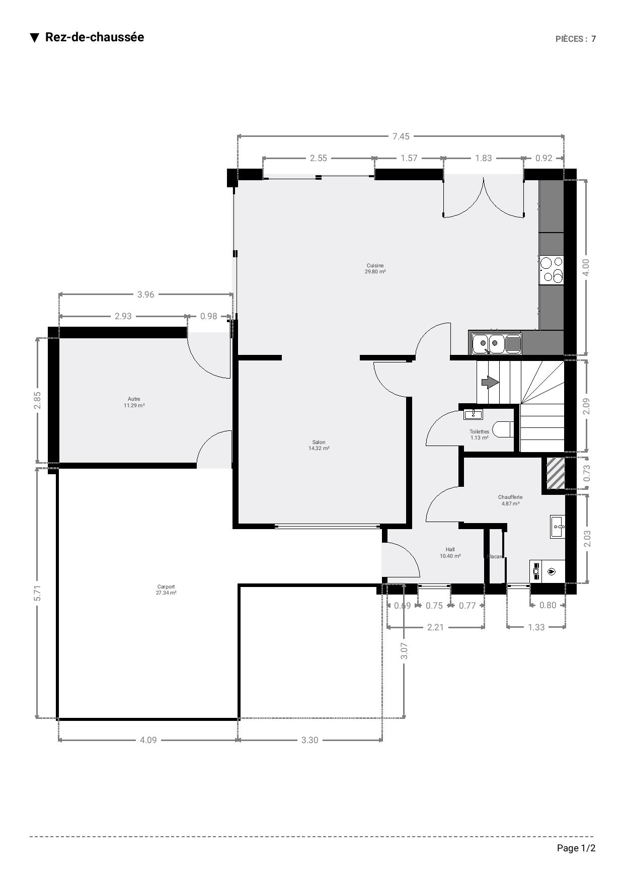 👉 Rez-de-chaussée : hall d’entrée, WC séparé, buanderie, vaste séjour lumineux (salon/salle à manger) avec cuisine ouverte donnant sur le jardin, local technique et car-port.
