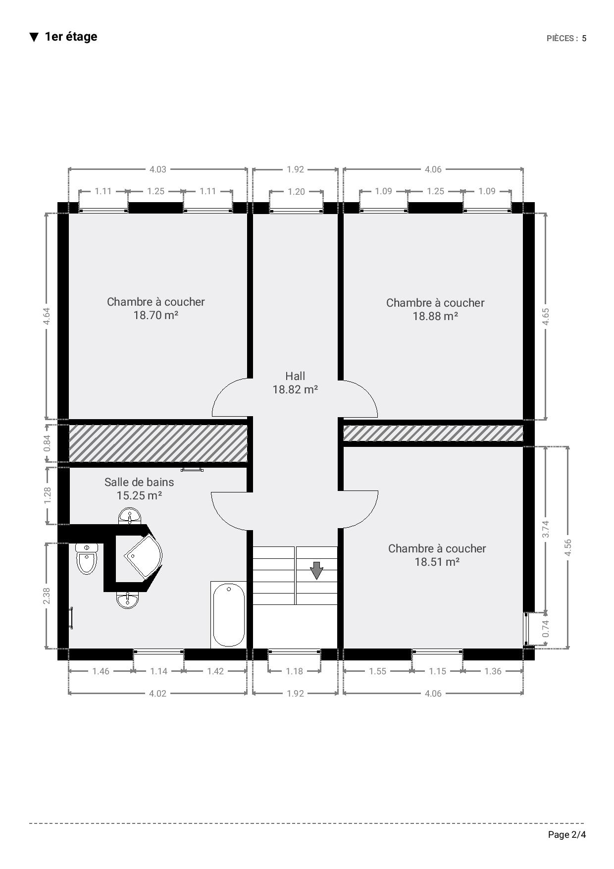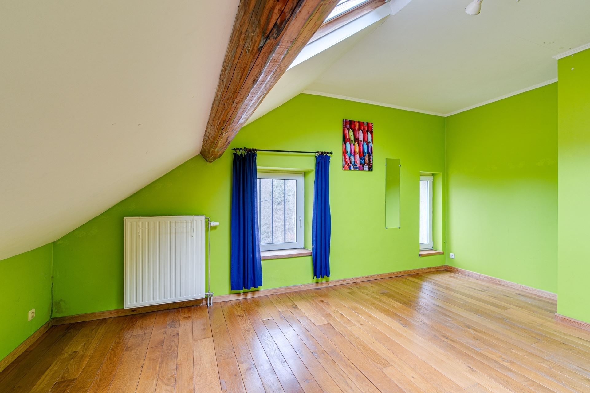Le premier étage se compose d’un hall de nuit, de trois chambres et d’une salle de bains. Au deuxième étage, la maison offre encore une vaste salle de jeux, une salle de bains et deux chambres supplémentaires.