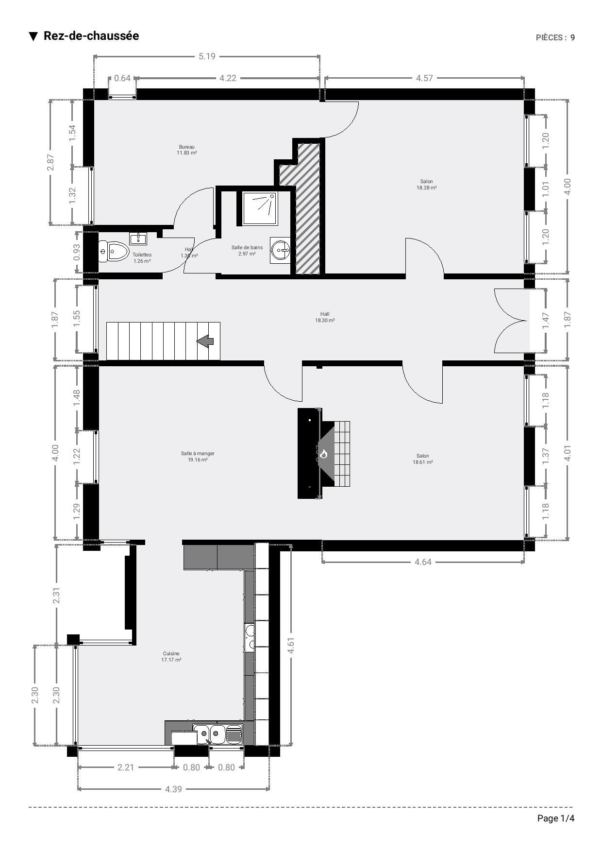 Cette propriété aux volumes généreux se compose, au niveau -1, de caves avec chaufferie. Au rez-de-chaussée, vous découvrirez un hall d’entrée, un WC séparé, une salle de bains, un bureau pouvant également faire office de chambre, un salon, une grande salle à manger, un second salon, une cuisine lumineuse ainsi qu’un garage.