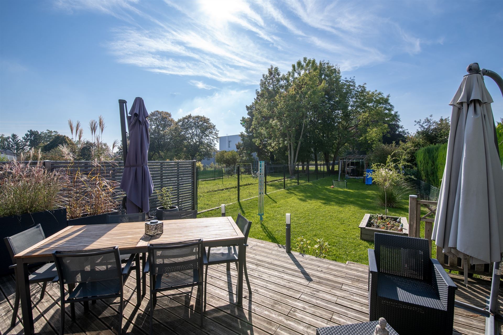 - Orientation sud-ouest à l’arrière 🌞 : ensoleillement garanti tout l’après-midi et en soirée