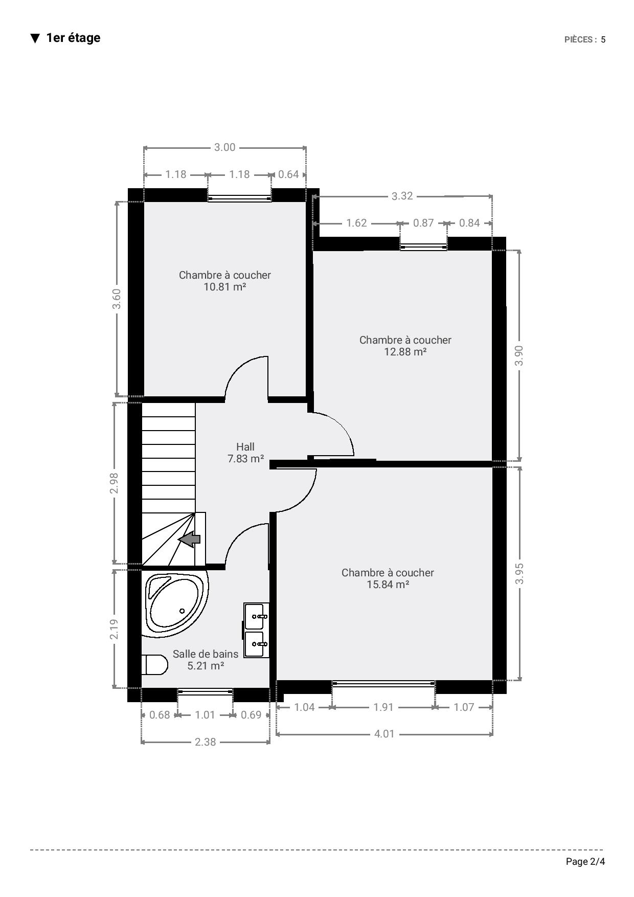 Le 1er étage offre trois chambres confortables, un hall de nuit et une salle de bains.
