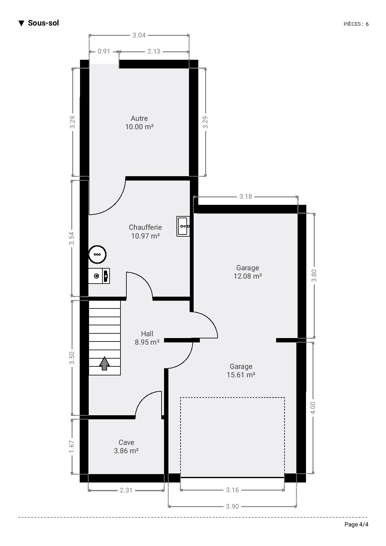 Un grenier complète le 3e niveau, tandis que le sous-sol comprend des caves, une chaufferie et un garage.