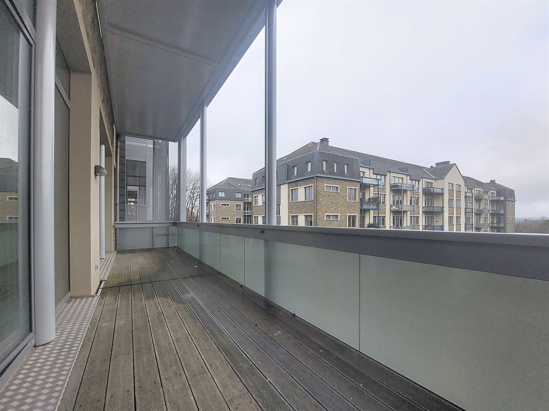 Wimmobilière vous propose à Arlon, au sein des casernes Callemeyn, un très bel appartement de 65 m² composé comme suit: hall d''entrée, séjour lumineux avec grande terrasse de 24 m² ( isolée des voisins) cuisine équipée, salle de bain contemporaine,2 chambres, et une cave. très bonnes finitions ( plafond acoustique, armoire vestiaire). Peb classe B. Disponible le 1er décembre.