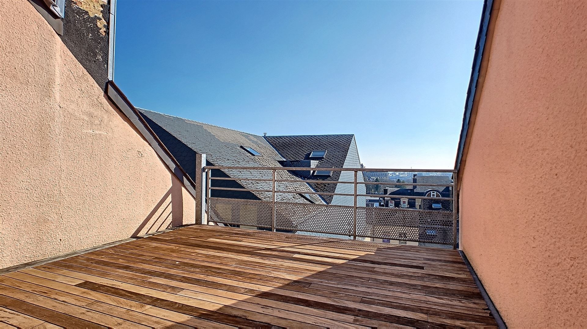 W Immobilière vous propose un agréable duplex de 88 m² situé dans le centre-ville d'Arlon. Ce bien se situe au troisième étage d'une résidence avec ascenseur et se compose comme suit: hall d'entrée, Wc séparé, séjour ouvert avec espace cuisine et salle à manger. Au niveau supérieur: chambre avec un dressing et salle de bains. Le bien est loué avec un emplacement de parking semi-couvert dans un espace sécurisé. Situation idéale dans une rue calme du centre-ville. Grande terrasse orientée plein SUD, avec un balcon coté piétonnier. Les charges communes sont évaluées à 100€ /mois.